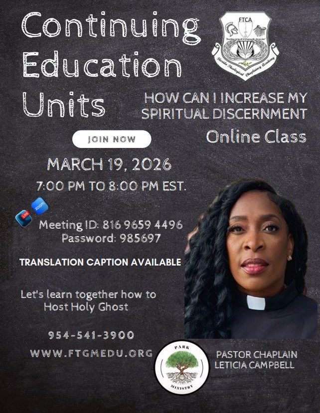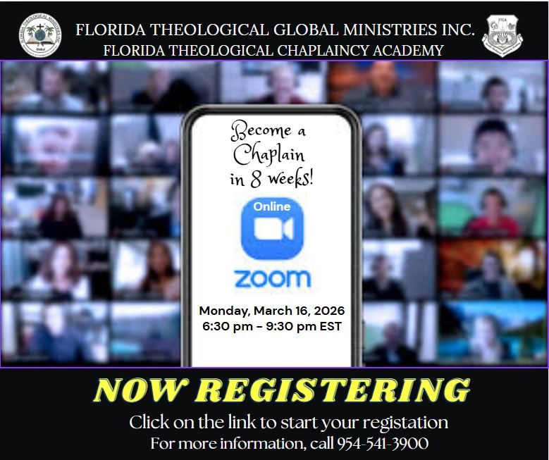 Thank you for your interest in Florida Theological Chaplaincy Academy (FTCA). Our mission is to ordain individuals who feel the call to serve in ministry. FTCA is a non-traditional continuing education academy with a Bible-based program that aims to enhance students' understanding of God's truth. Our customized programs of study cater to the particular needs of individuals, ministers, and leaders.
