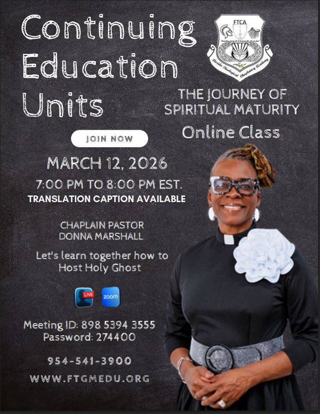 Join us on Thursday, March 19th at 7:00 PM EST. with Chaplain Pastor Leticia Campbell, teaching on The Journey of Spiriual Maturity.